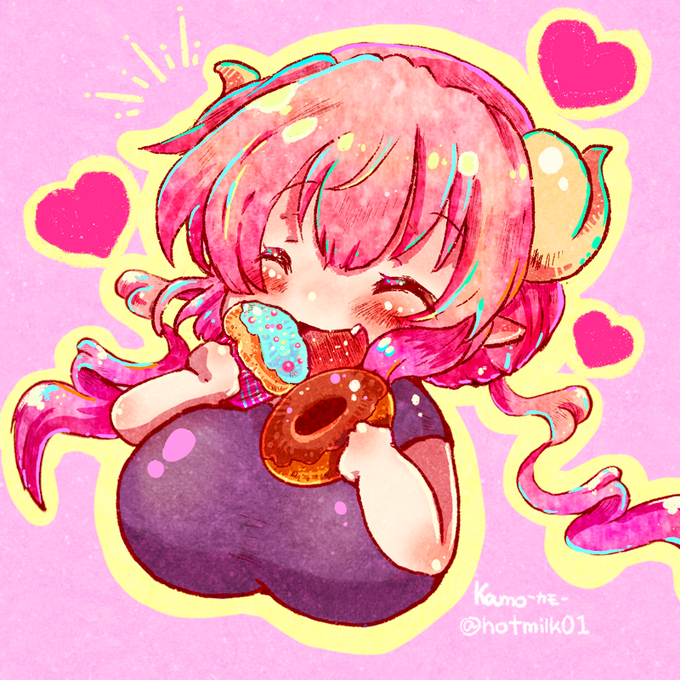Kamo 食べ物 動物イラスト Hotmilk01 小林さんちのメイドラゴン イルルのお菓子タイム イルル可愛いすぎて尊い 小林さんちのメイドラゴン Nitter